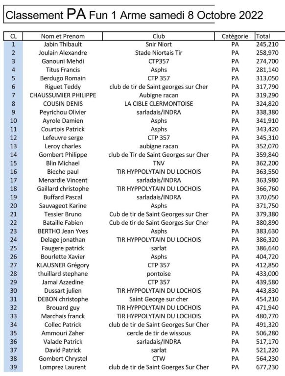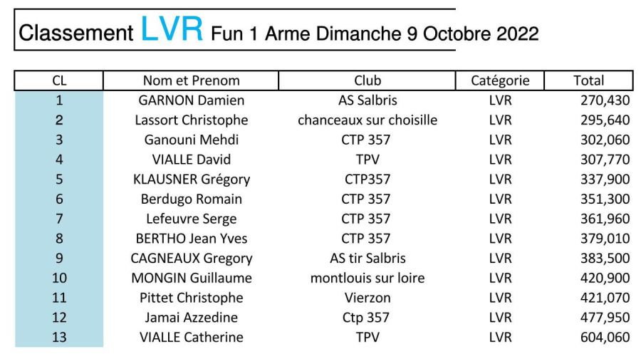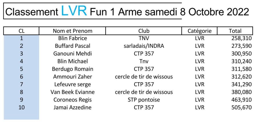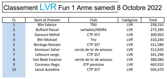Un problème est survenue au moment du chargement des résultats des tireurs LVR et nous en sommes vraiment désolés pour la personne qui était en 4e position au