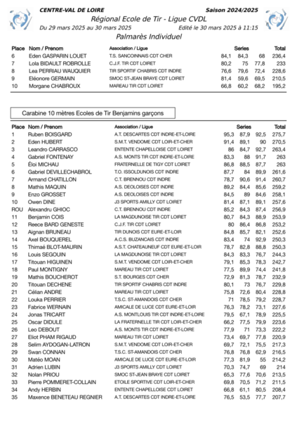 Suite au championnat régional 10M qui vient de se terminer ce week-end,